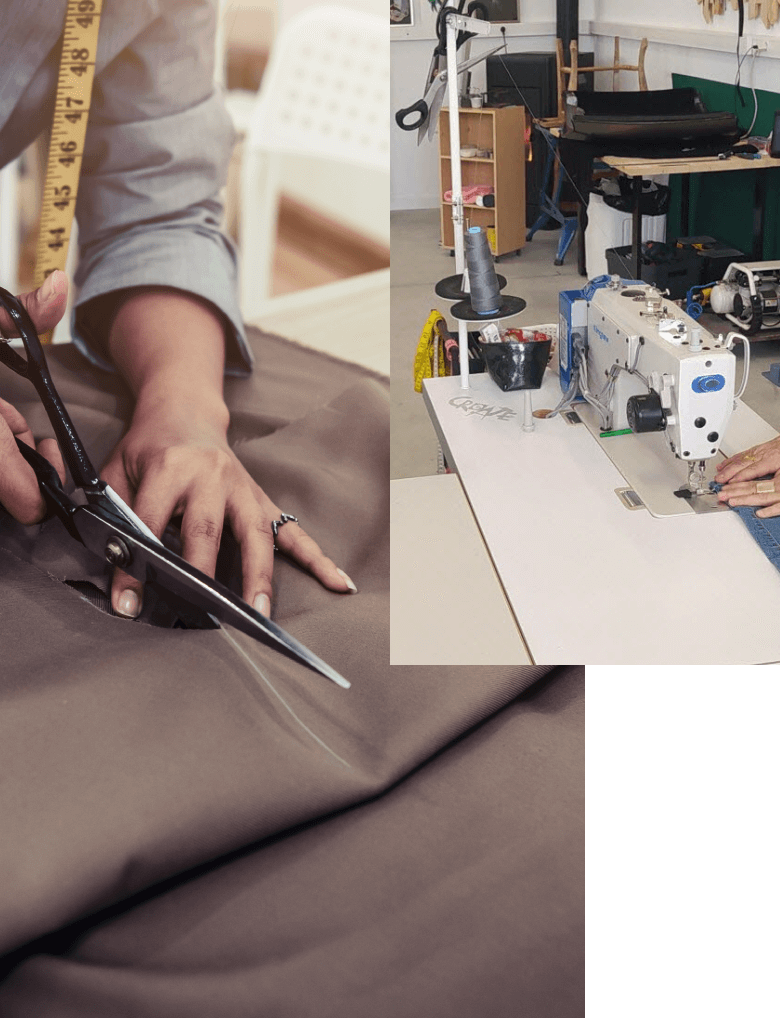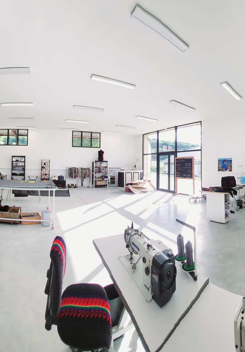 Tous les travaux sont réalisés dans son atelier équipé de 4 machines industrielles et adaptées. Une brodeuse professionnelle a fait récemment son entrée pour la personnalisation de certaines créations.